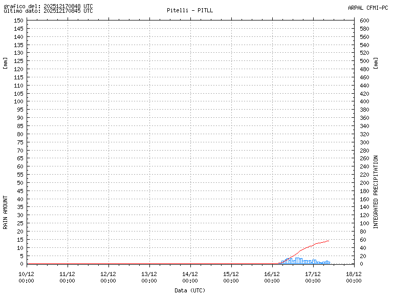 Dati acquisiti dalle stazioni della rete ARPAL - ora UTC